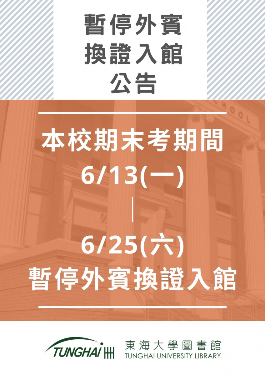 [暫停外賓換證入館] 111年6月13日(一)~6月25日(星期六)期末考週及考前一週