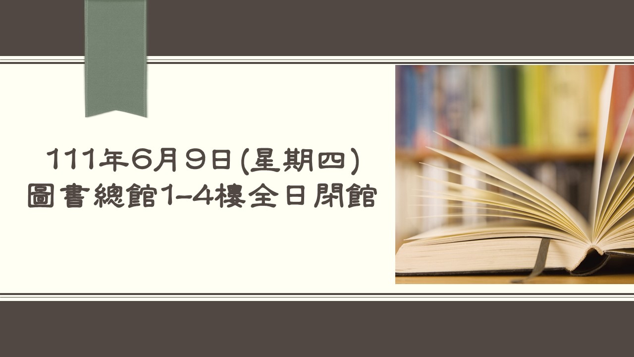 111年6月9日(星期四)圖書總館1-4樓全日閉館....
