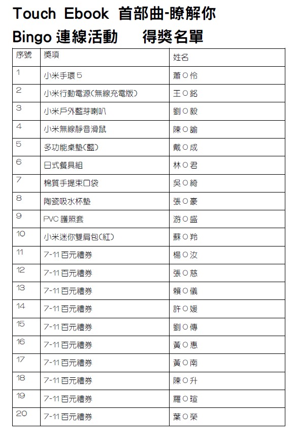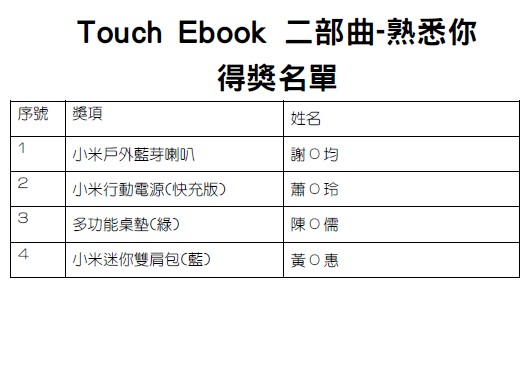 Touch Ebook E起來~電子書推廣活動,得奬名單公布!